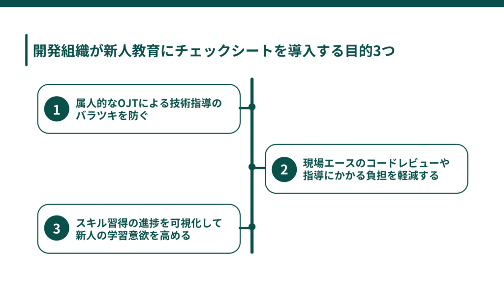 開発組織が新人教育にチェックシートを導入する目的3つ