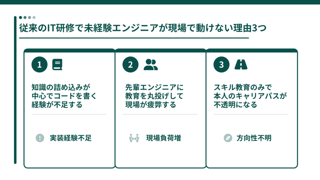 従来のIT研修で未経験エンジニアが現場で動けない理由3つ