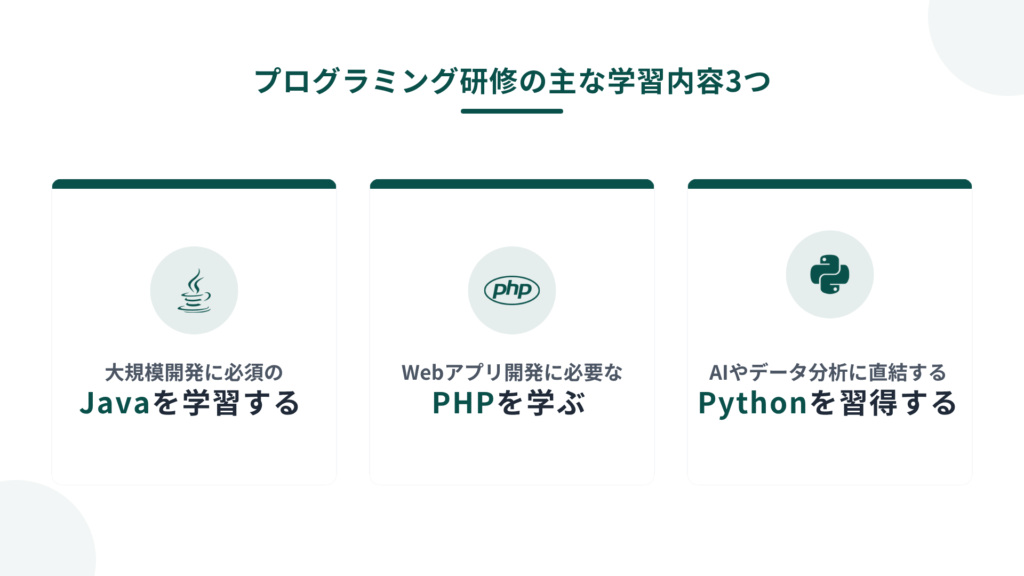 プログラミング研修の主な学習内容3つ