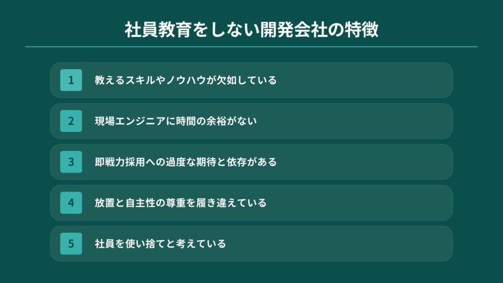教育が機能しない開発会社に見られる典型的な特徴を解説します。