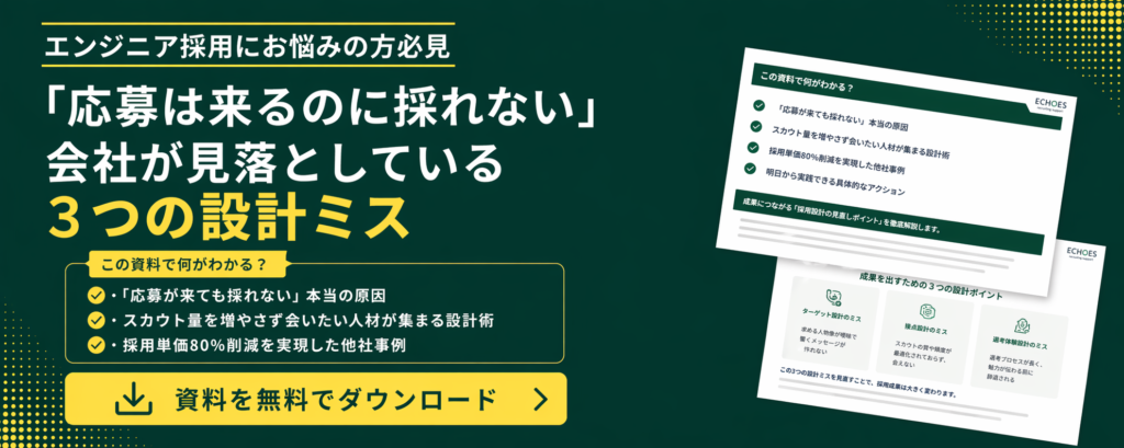 現場と対話し、要件を言語化すれば、必要なエンジニアは自ずと見つかります。市場が厳しい中でも「辞めにくい組織」と「自社に合う採用」を確立できるとエコーズは確信しています。