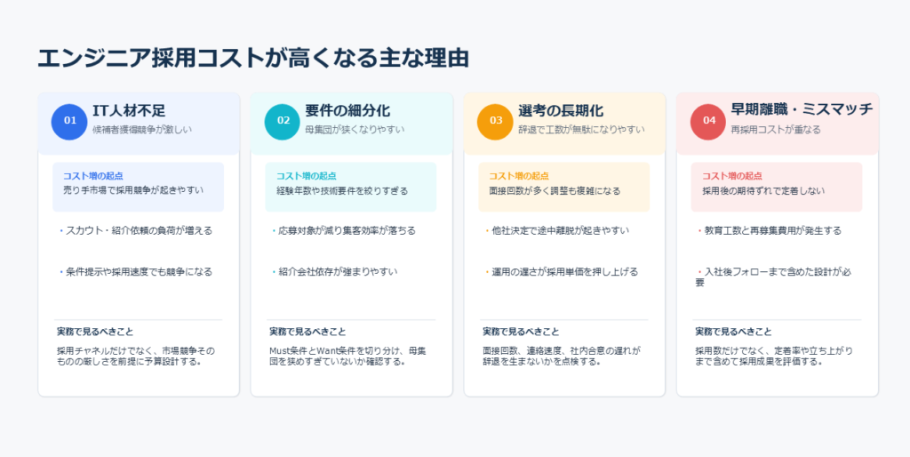 エンジニア採用では、特に内部コストが膨らみやすい傾向があります。